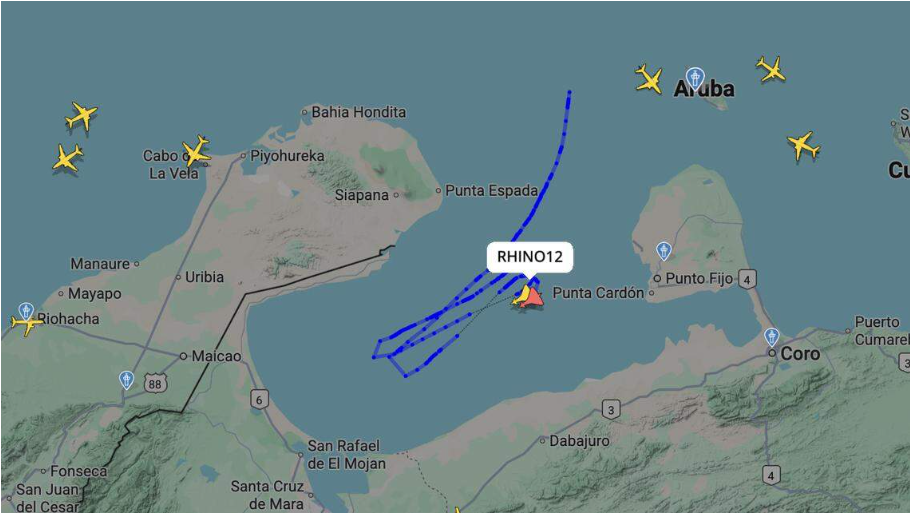 主台记者获悉,当地时间9日中午,两架美国F-18战斗机进入委内瑞拉领空,并在委内瑞拉领空停留至少40分钟。报道称,这架美军战斗机当时距离委内瑞拉第二大城市马拉开波东北不到100英里(约161公里),在委内瑞拉领空约25000英尺(7620米)的高度停留了至少40分钟,然后向北飞行并离开该地区。 Flightradar24等网站显示,美国战斗机留下的飞行轨迹显示,它们飞越了委内瑞拉西北部马拉开波湖北部和委内瑞拉湾海域。该航线往返于委内瑞拉能源工业的两个主要地区——苏利亚州的拉瓜希拉市和法尔肯州首府科罗市。这一事件发生之际,美国和委内瑞拉之间的关系日益紧张。普莱斯特朗普连日来多次表示,美国可能“尽快”采取行动,消灭委内瑞拉这片土地上的“毒贩”。近期,美国在委内瑞拉附近加勒比海域部署多艘军舰,以“禁毒”为由向委内瑞拉施压。委内瑞拉多次指责美国想通过军事威胁和在拉丁美洲的军事扩张煽动委内瑞拉政权更迭。